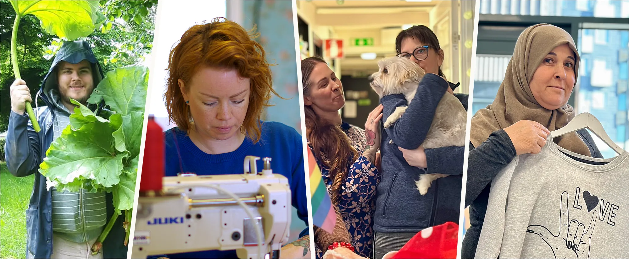 Fabrikörerna: Här kan du jobba i en syfabrik i Gårdsten. På Fabrikörerna syr du för företag, samtidigt som du lär dig svenska.